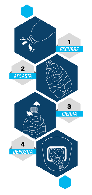 Clasifica tus residuos en cada contenedor y sigue los pasos para depositarlos.